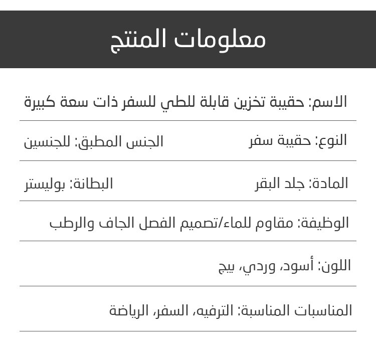 حقيبة دفل للسفر متعددة الوظائف وقابلة للطي