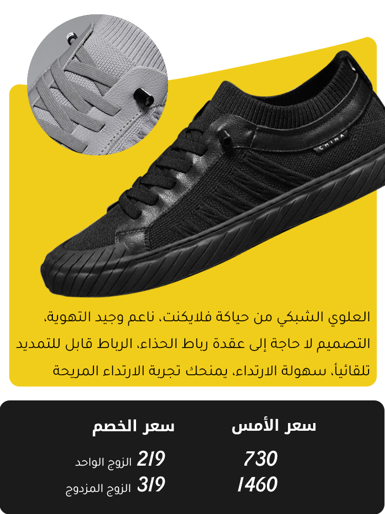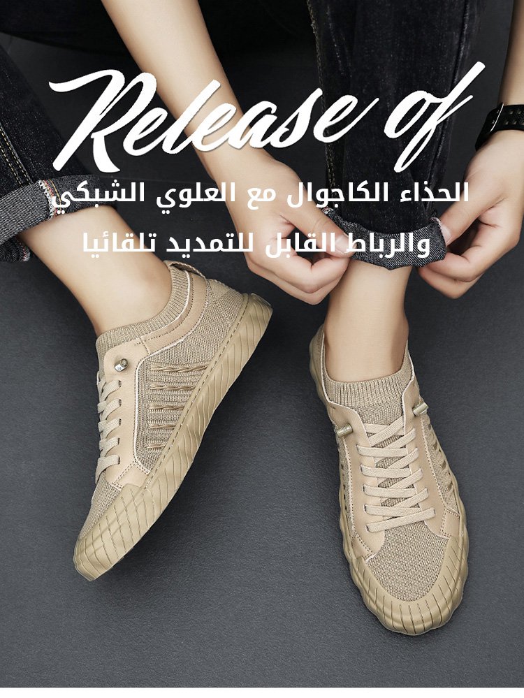 الحذاء الكاجوال مع العلوي الشبكي والرباط القابل للتمديد تلقائيا