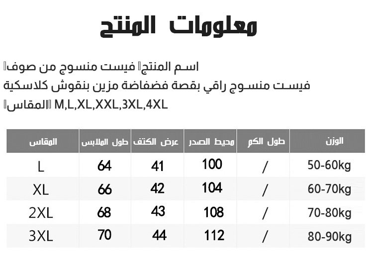 فيست منسوج راقي بقصة فضفاضة مزين بنقوش كلاسكية