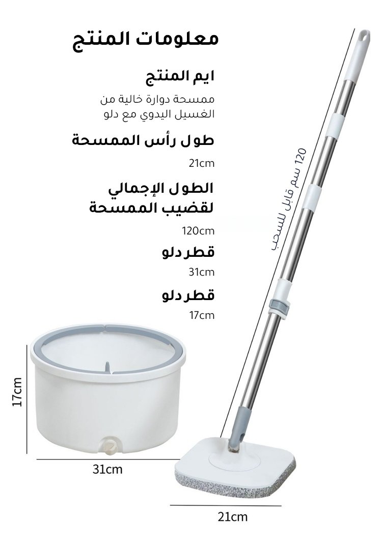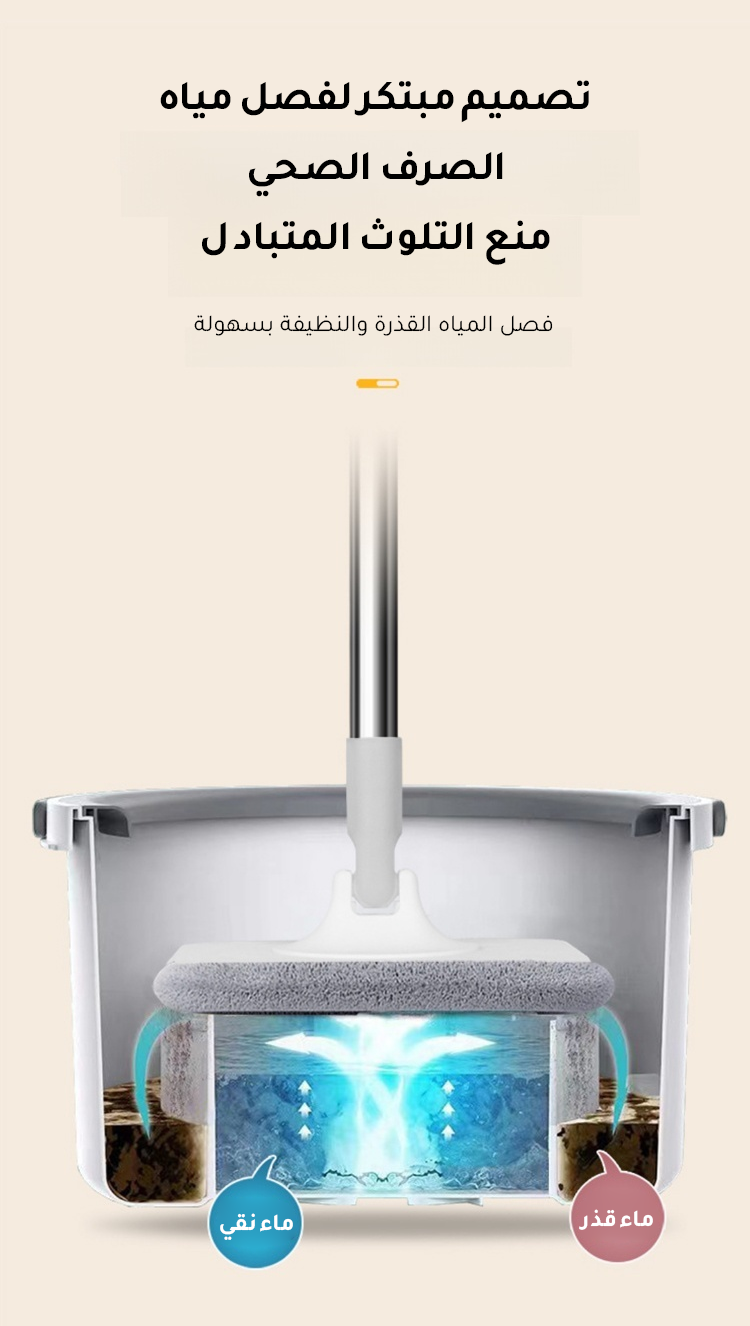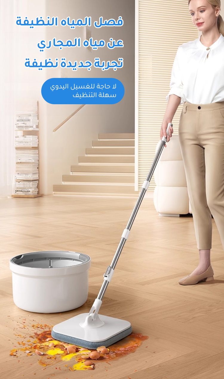 ممسحة دوارة خالية من الغسيل اليدوي مع دلو